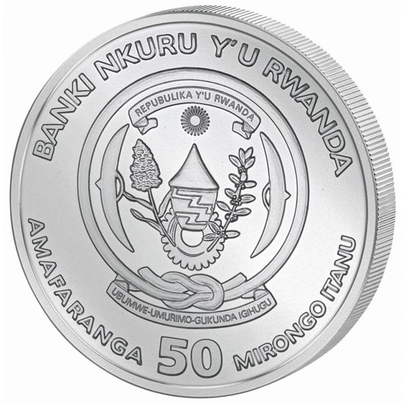Année 2020 Pays : Rwanda Poids brut : 31,10 g Poids fin : 31,10 g Titre : 999/1000 Ø : 40 mm Effigie : bushbaby – Galagol Valeur faciale : 50 AMF Pièce scellée ou sous capsule plastique
