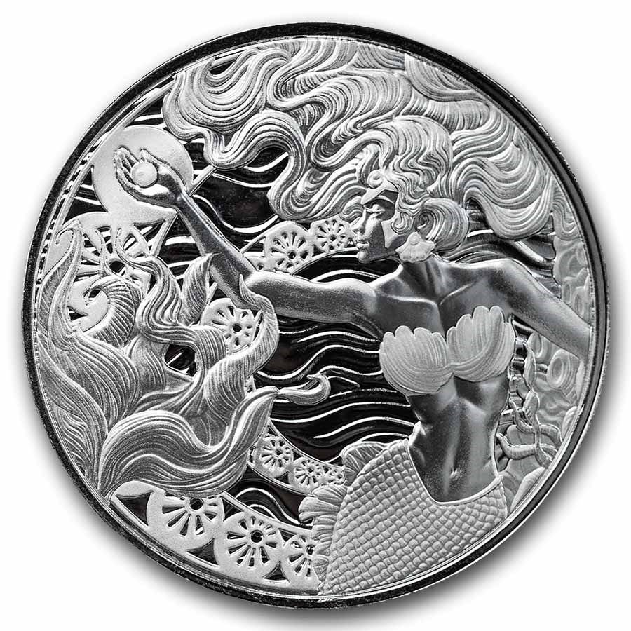 Pays : Samoa Emetteur : Scottsdale Mint Poids brut : 1 oz – 31,1 g Poids fin : 31,1 g Titre : 999/1000 Diamètre : 39 mm Epaisseur : 4 mm Variante : Sirène et perle (série princesse)