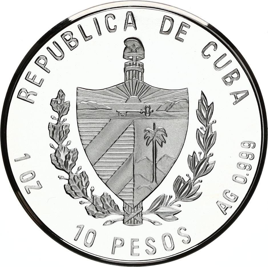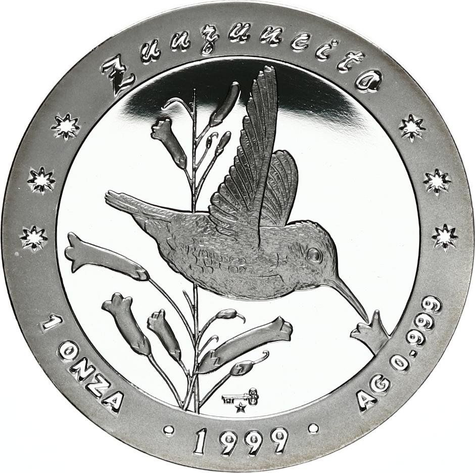 Pays : Cuba Poids brut : 31,1 g Poids fin : 31,1 g Titre : 999/1000 Ø : 38 mm Valeur faciale : 10 pesos Hummingbird Seulement 2 500 exemplaires Traces de circulation