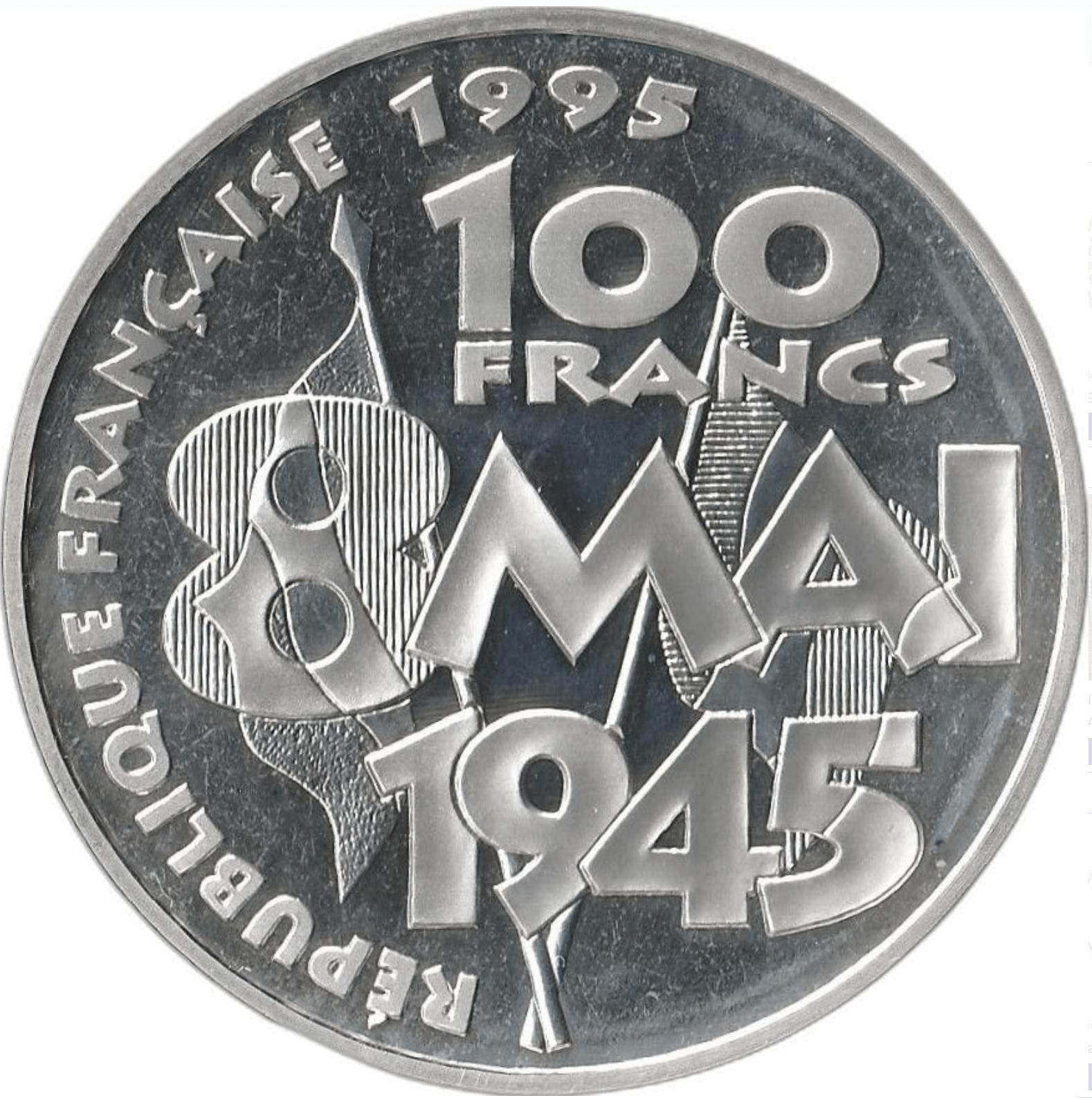 100 francs 8 mai 1945 pax 1995 grand module argent
