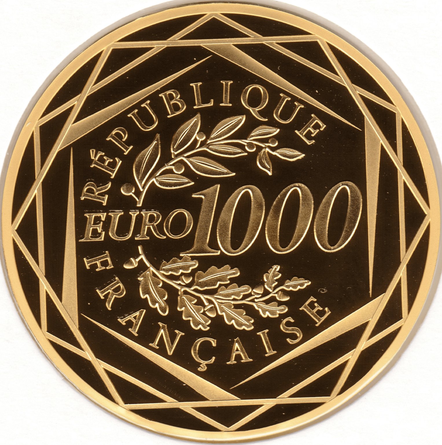Monnaie de Paris Poids brut : 20 g Poids fin : 20 g Titre : 999/1000 Ø : 39 mm Valeur faciale : 1000 Euros Etat : BE Effigie : Le Coq Vendu dans son coffret d’origine