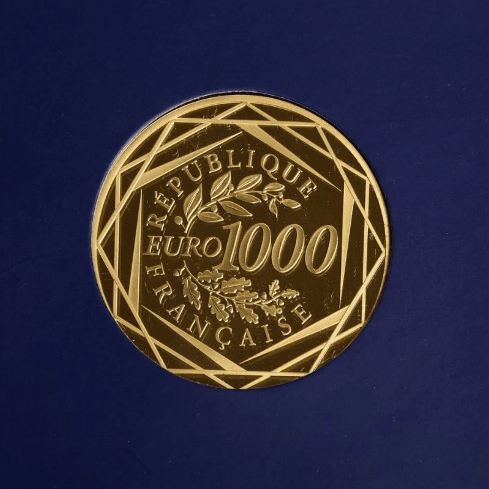 Emetteur : Monnaie de Paris Poids brut : 20 g Poids fin : 20 g Titre : 999/1000 Ø : 39 mm Valeur faciale : 1000 Euros Etat : BE Effigie : Hercule Sous coffret d’origine