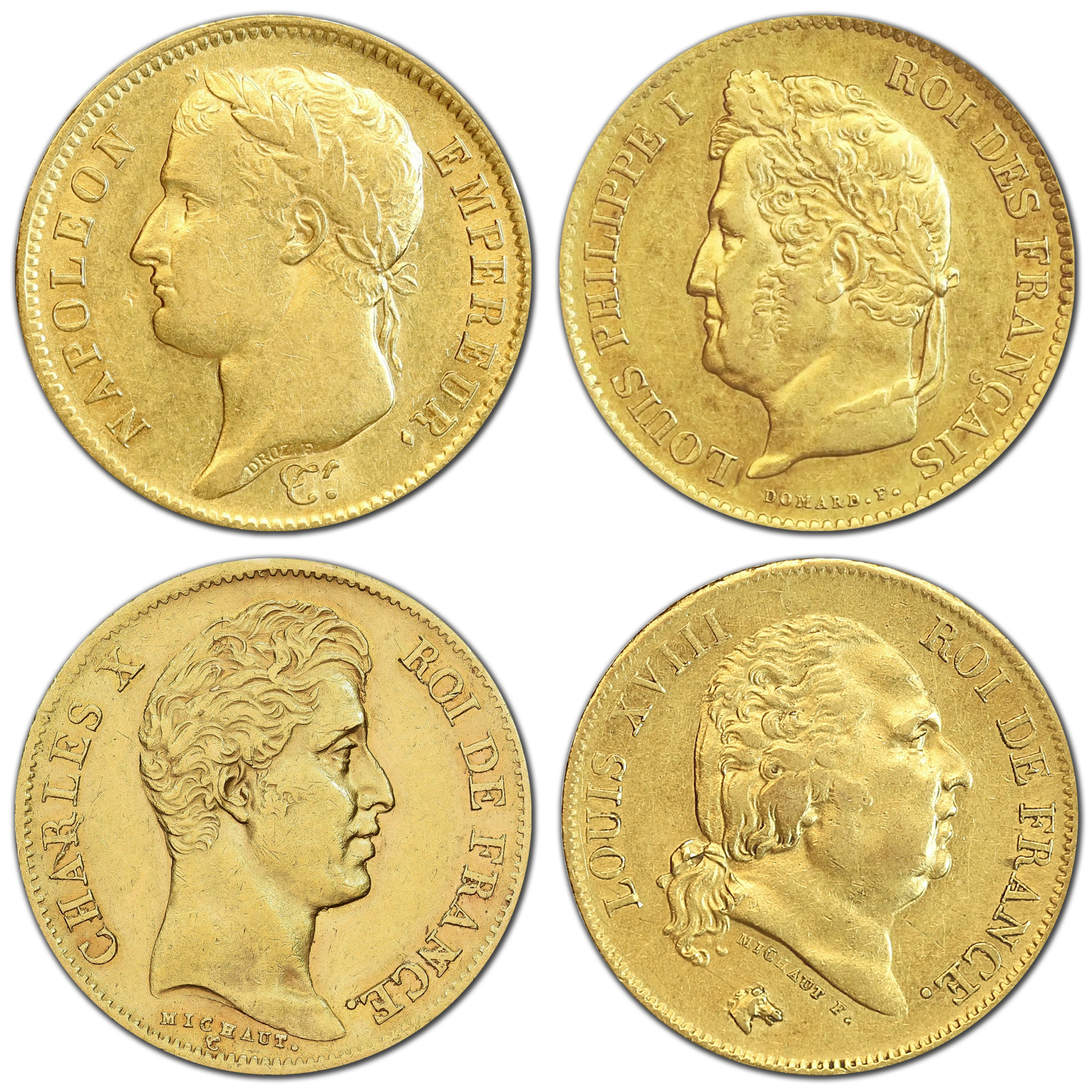 Effigies en fonction de notre stock : Louis Philippen, Charles X, Napoléon tête laurée ou nue, Louis XVIII