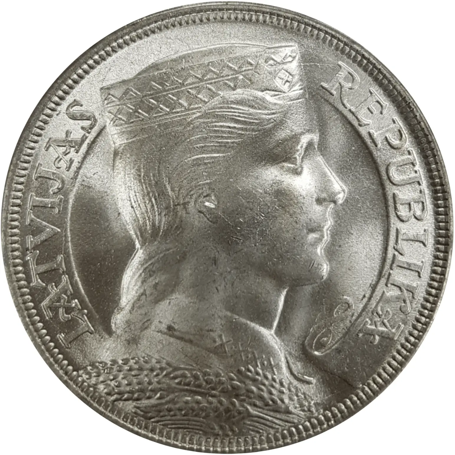 Pays : Lettonie Poids brut : 25 g Poids fin : 20,87 g Titre : 900/1000 Ø : 37 mm Valeur faciale : 5 Lati Graveur : Rihards Zariņš Etat TTB