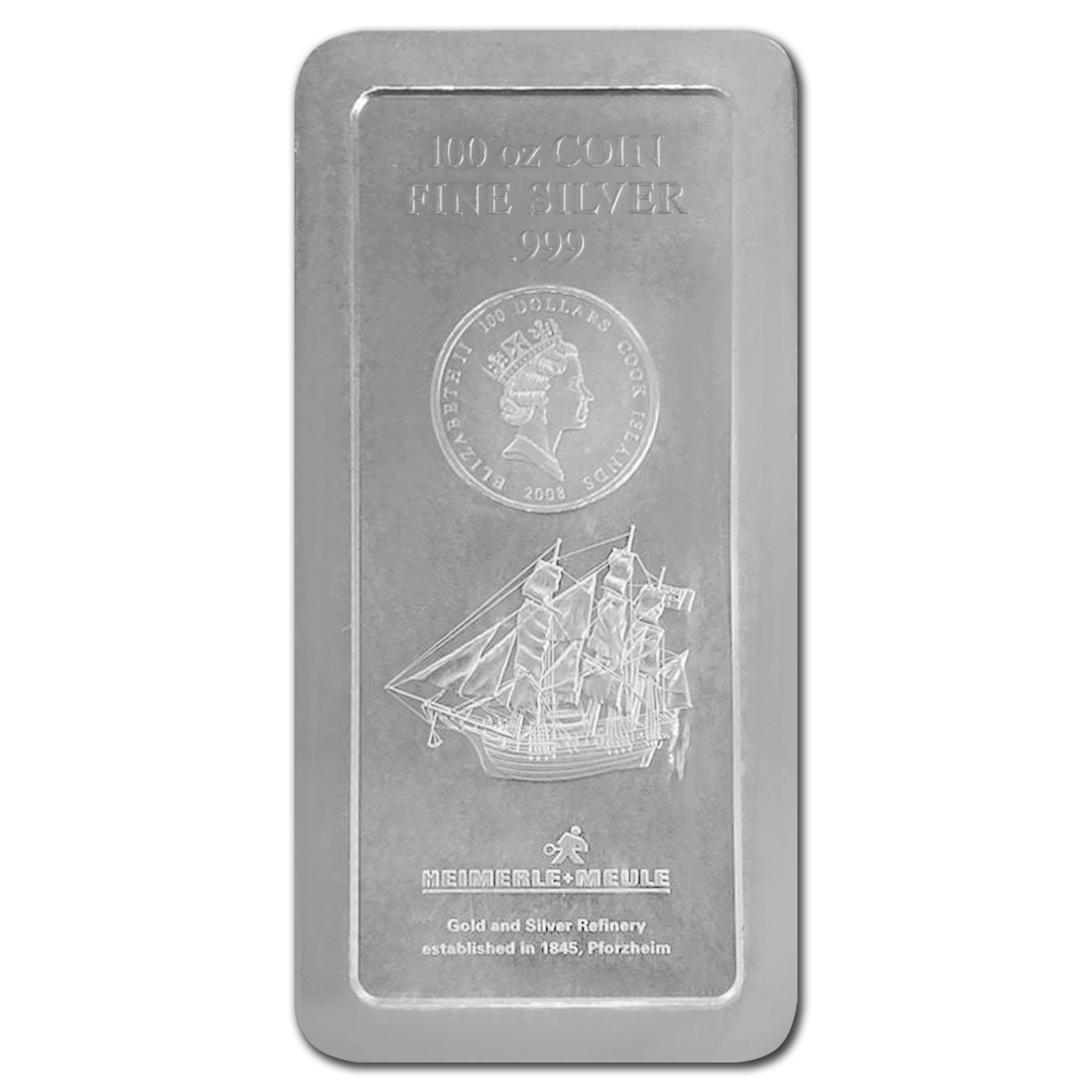 Poids : 100 oz (3110 g) Titre : 999,9/1000 Fabricants : Heimerle Meule ou BH Mayer’s Pays : Cook Islands Valeur faciale : 100$ Années différentes Lingot livré avec ou sans certificat Produit exempté de TVA