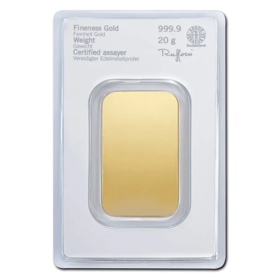 Lingot or 20 g heraeus