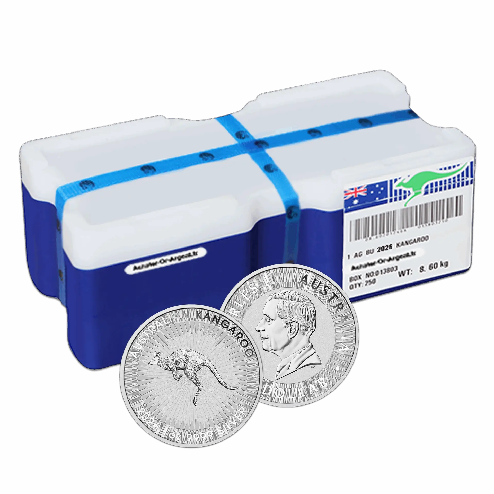 Pays : Australie Emetteur : Perth Mint Poids brut : 31,1 g Poids fin : 31,1 g Titre : 999,9/1000 Ø : 40,6 mm Epaisseur : 3 mm Effigie : le kangourou