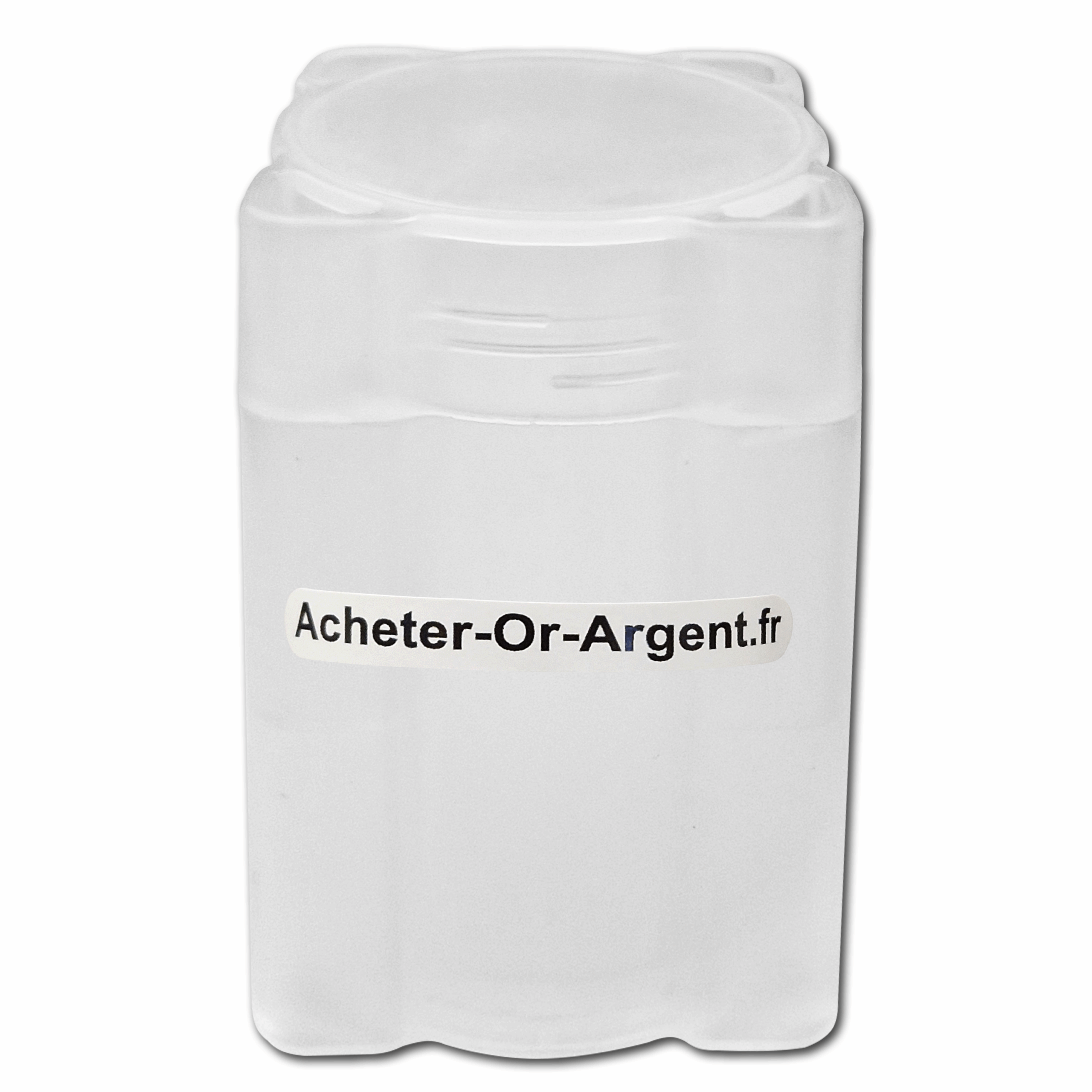 Tube vide en plastique pouvant contenir jusqu’à 20 pièces d’argent de diamètre maximum 41 mm.